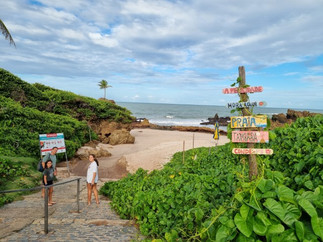Tivemos overbooking pela Gol e chegamos um pouco atrasados na nossa programação mas direto de Recife à praia de Tambaba, muito linda e é lá que fica a praia de naturismo, onde todos vão à praia pelados. Crianças até 13 anos não precisam tirar a roupa e podem entrar na praia, eu e a Betina até entramos, mas achamos aqui ali muito louco e não coneguimos ficar não, fujimos.