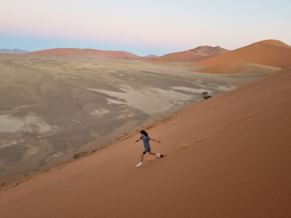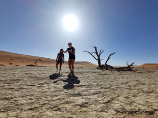 Seguimos então para visitar Deadvlei, uma caminhada rápida, menos de 30min para chegar naquele cenário icônico da Namíbia, que lugar mágico, que luz. Papai e mamãe ainda foram além subir as dunas a volta. Tem o Big Daddy que é a maior duna, mas por falta de tempo não deu para chegar lá, ainda assim, subir uma delas já dá uma bela vista do vale.