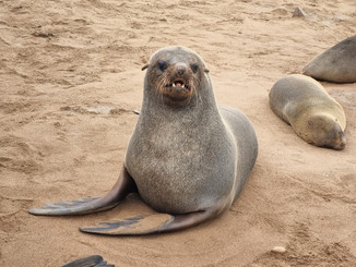 Chegamos à Cape Cross Seal Reserve, para ver milhões de focas e sentir um cheiro horroroso, mas foi muito divertido. Para chegar lá tivemos que fazer um desvio de rota de pouco menos de uma hora para o norte, mas vale a pena. Na volta demos uma rápida parada para ver um dos naufrágios existentes na rota, o Zélia. Esta é a chamada costa do esqueleto, justo por isso, as águas rasas e traiçoeiras da costa fizeram muitos navios naufragarem.