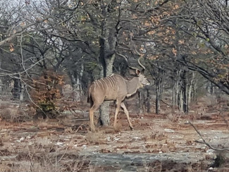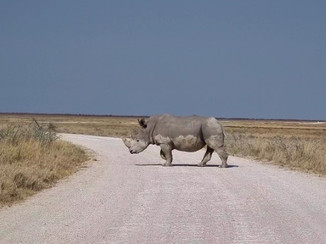 Presenciamos o nascer do sol fazendo nosso safari pela região de Halali, mas infelizmente não demos sorte rodamos uma boa parte destas horas sem ver nada, apenas uma família de elefantes com uns pequeninos e um que até se estressou conosco e tivemos que nos mandar dali. Mas tivemos ao fim uma grande cena de um rinoceronte branco cruzando a pista em nossa frente, um jackal (raposa) Kudus, Gnus etc. mas foi no waterhole já chegando de volta ao portão de Otjkandero que presenciamos um show com elefantes enormes, emas, springboks e gnus.